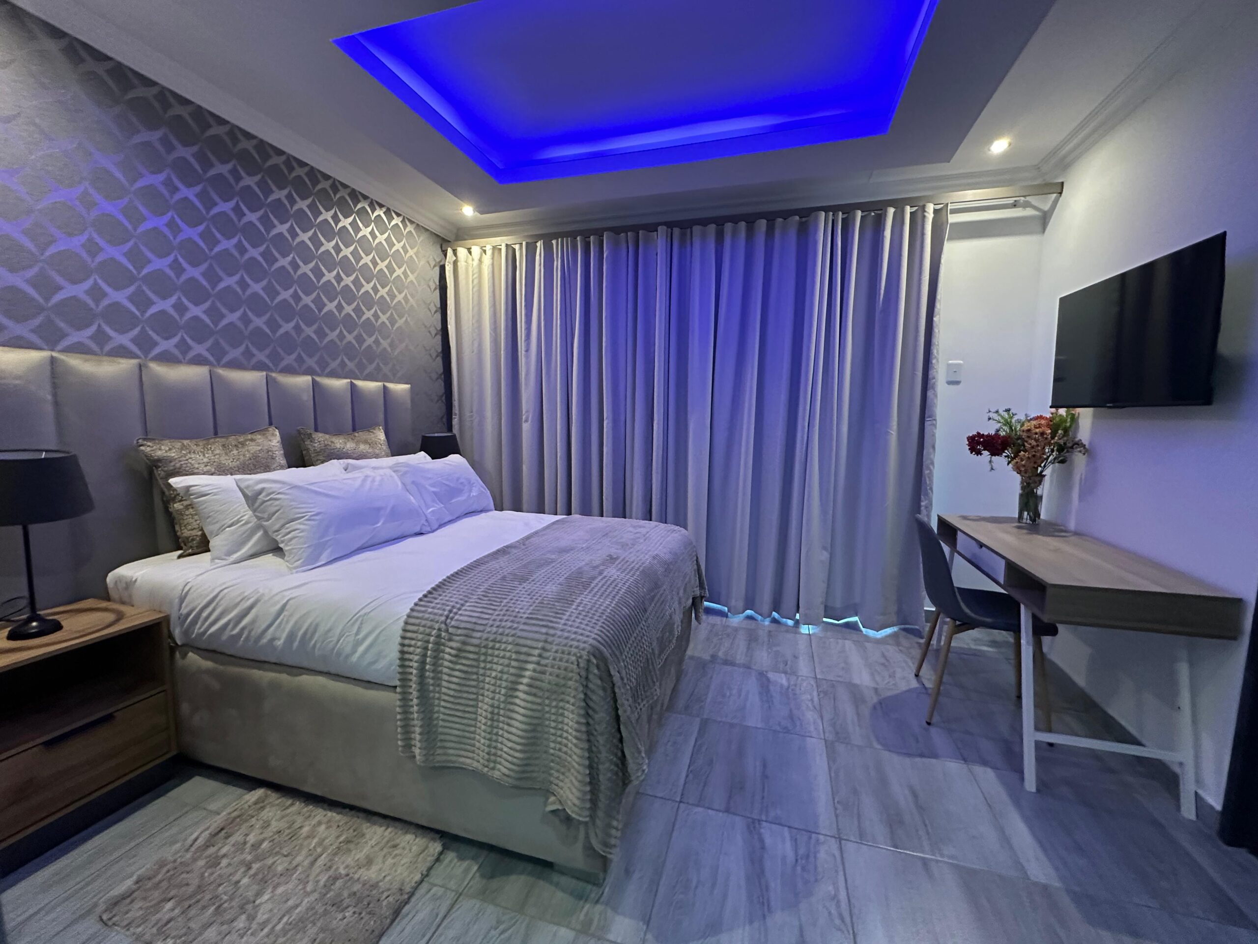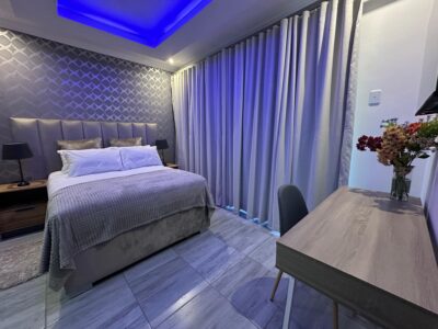 Pool View Delux Availability Prices start at: R1,250 per night Guests: 2 Amenities: Bathroom essentials, Bedroom comforts, Free parking, Hair dryer, TV, Wi-Fi View: Swimming pool Size: 40m² Bed Type: Double Bed Required fields are followed by * Check-in Date * Check-out Date * Guests 1 2